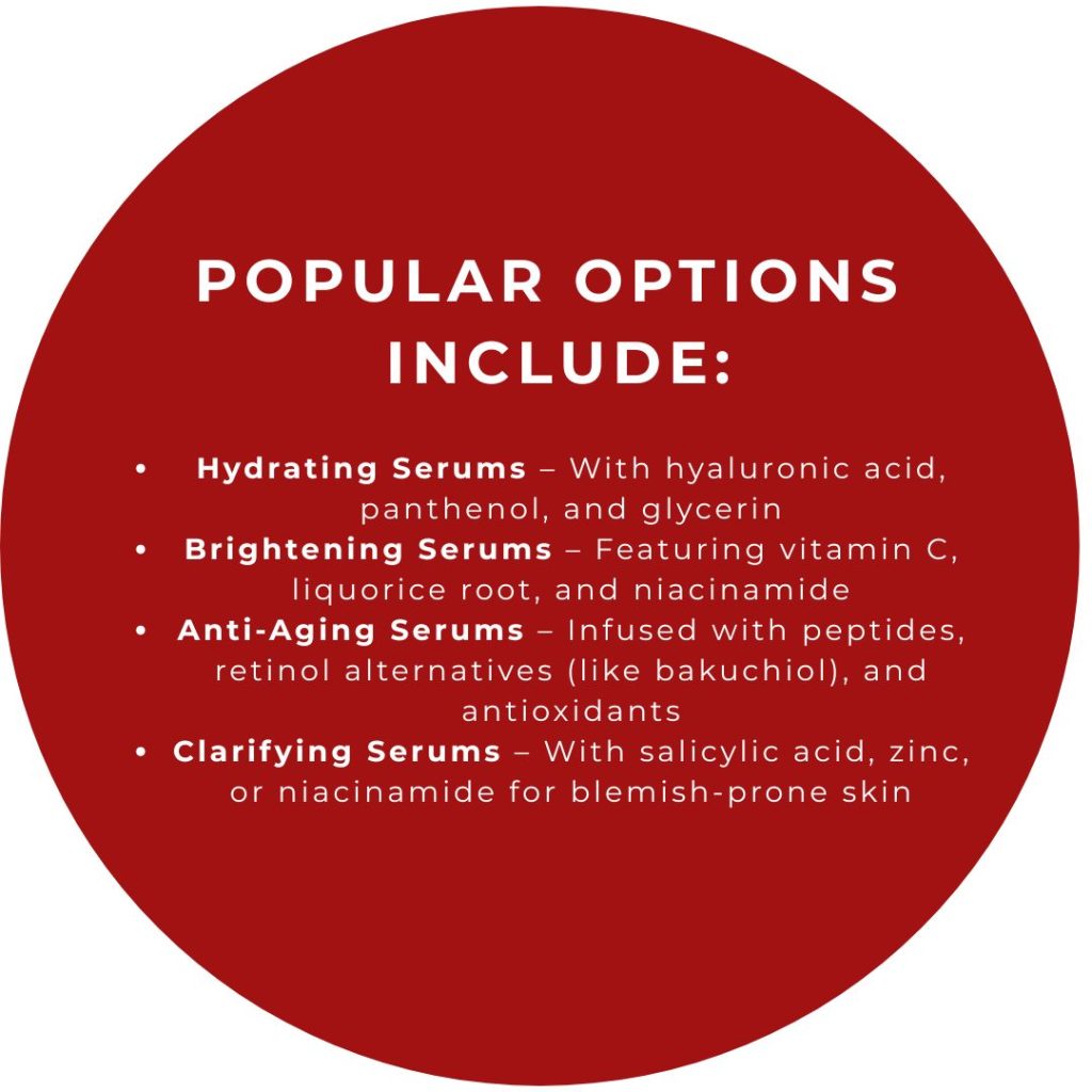 Our private label facial serums are expertly formulated to deliver potent active ingredients deep into the skin. Designed to address specific concerns – like dullness, fine lines, uneven texture, or blemishes – our serums offer high-performance results in lightweight, fast-absorbing formulas.